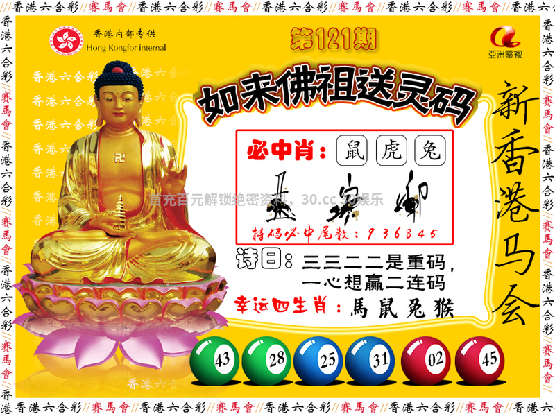 | 121期:绝杀③肖【羊虎狗】开:兔15中 |